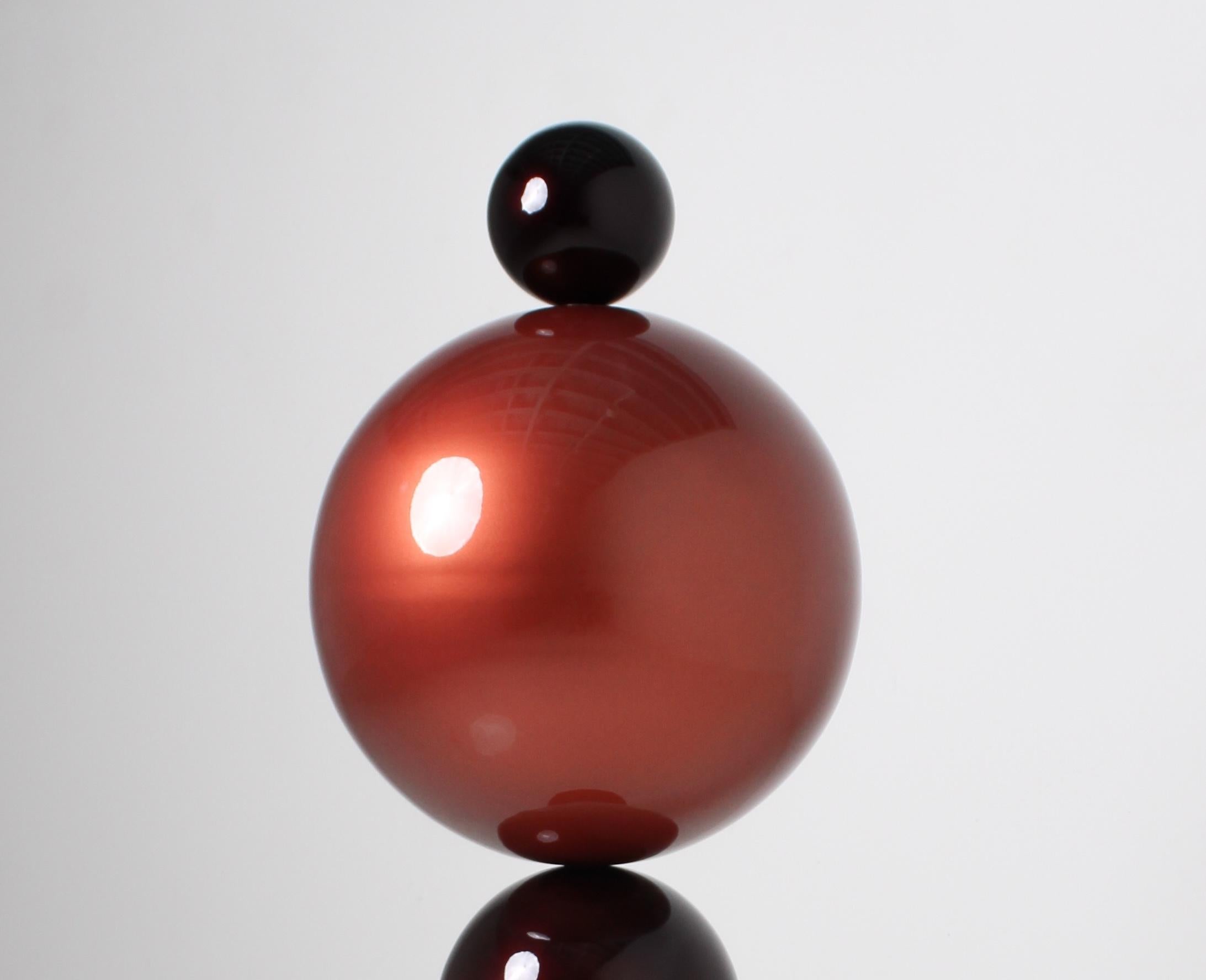 At once contemporary and minimalist, Claude Millette’s dynamic tabletop sculptures exude energy. This piece, one of a series, recalls the form of tumbling dice—individual cubes are stacked at precarious angles, one on top of the other. The bright, glossy red finish enlivens and accentuates the modern form. The Quebec artist...