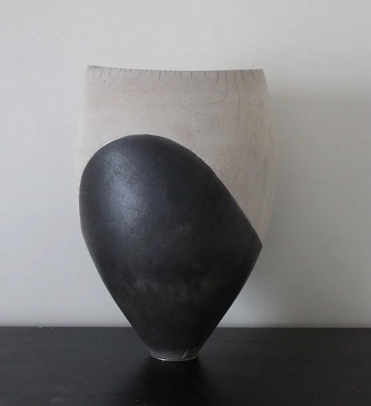 Closed Vase by Tien Wen - Abstract ceramic sculpture, black and white