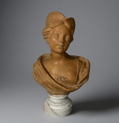 After Jean-Antoine Houdon (French, 1741-1828) Bust of Diana Bronze Signed on side, Susse Frères foundry stamp on base 28.5 x 16.25 inches Jean-Antoine Houdon's bust of Diana is an 1...