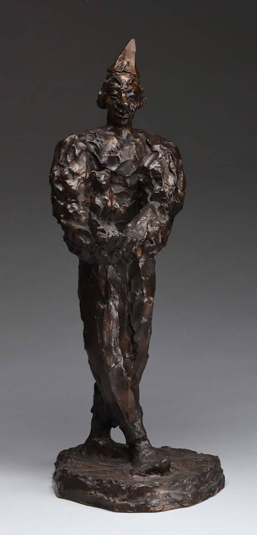 Agnes YarnallClown Holding Teddy Bear, Unique Bronze Expressionist Sculpture