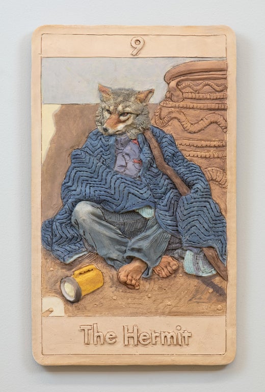 The Influencer, Tarot Card 2, by Alessandro Gallo, 2025, Ceramic, Hangs by Cleat