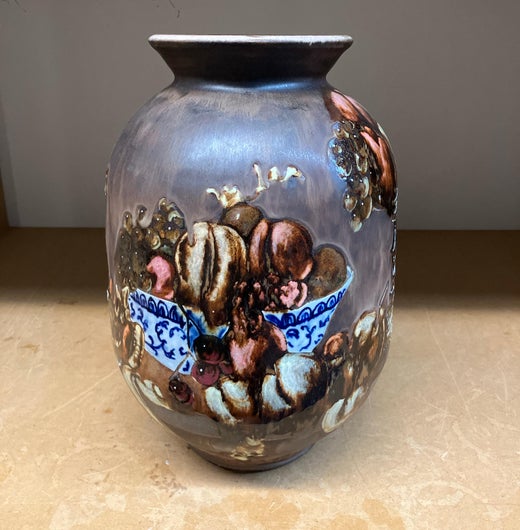 "Vanitas Vase #11", Ceramic Sculpture with Still Life Painting in Glaze