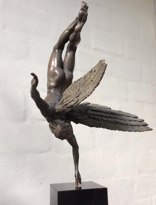 The sculptures of Margot Homan (1956, Oss) show a perfect command of the old craft of modelling and sculpting, with which she continually develops an age old tradition. In her artistic education at the Tilburg Art Academy, the possibility to study and create figurative work lacked, so Homan felt obliged to study the anatomy of the human body all by herself. Homan looks for the inner balance in humans, which she literally translates in her sculptures. The connection to sculptures from antiquity is strong, but also bears apparent differences. An important feature of antique sculptures is their ultimate calm, while Homan’s sculptures are captured in movement, balanced, dancing or floating. The focus is on energy and willpower. The aim of the artist is to communicate from the heart, to provide rest, comfort and beauty to the viewer.