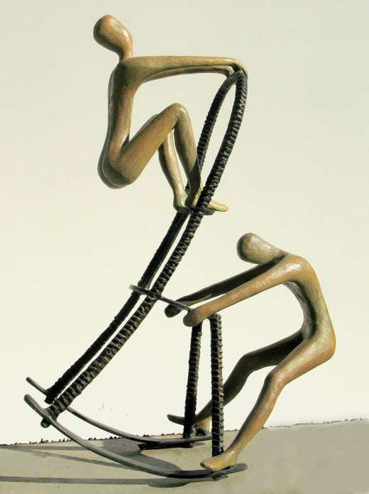 Tolla is considered one of the top Israeli artists working today. Born in Germany in 1958, Tolla attended the Merz school in Stuttgart until 1971. There she specialized in the art of ceramics and sculpture, developing her skill in an art form that would become a lifelong love story. Between 1977 - 1984 she studied at Bustan Institute and at Avni Institute of Arts, where she worked in stone and wood with well-known Russian sculptors. During these years of experimentation with varying materials, she transformed her style from realistic and figurative to more expressive and semi-abstract. Tolla describes her artistic process as a “relentless drive to keep creating different expressions of the ancient human spiritual quest for the divine.” This is evident in her rope sculptures which are both unique and naturalistic, balanced and fluid. In combining contrasting materials such as wood, metal, and bronze she is able to reflect tension or what she refers to as “spiritual optimism.” Tolla’s conviction is that, “our world is mostly composed of light and energy so that theoretically the victory of energy (spirit) over matter is only a question of time.” Tolla's works can be found in numerous private collections throughout Germany, France and the United States.