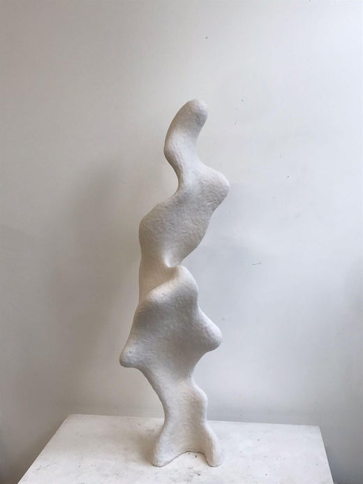 A key element of Olga's work is the embrace of uncertainty. Her sculptures evoke perpetual movement, with forms that remain fluid and undefined. They embody a state of constant transformation, representing physical existence in an uncertain space-time. Olga intentionally leaves her sculptures unfinished, raw, and devoid of color, allowing the material itself to speak, free from imposed aesthetic or emotional intentions.