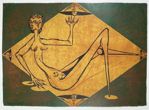 Ray Smith is a contemporary artist who combines the techniques of print- and collage-making with a Cubist aesthetic in his unique signature compositions. His abstract paintings and sculptures can often be classified as Surrealist for their otherworldly qualities. Smith uses anthropomorphism and visual juxtaposition to jar the viewer and give his creations a magically alien quality.