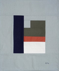 Winter Constructivist Window, Patchwork Compositions in Blue, Geometric Tapestry
