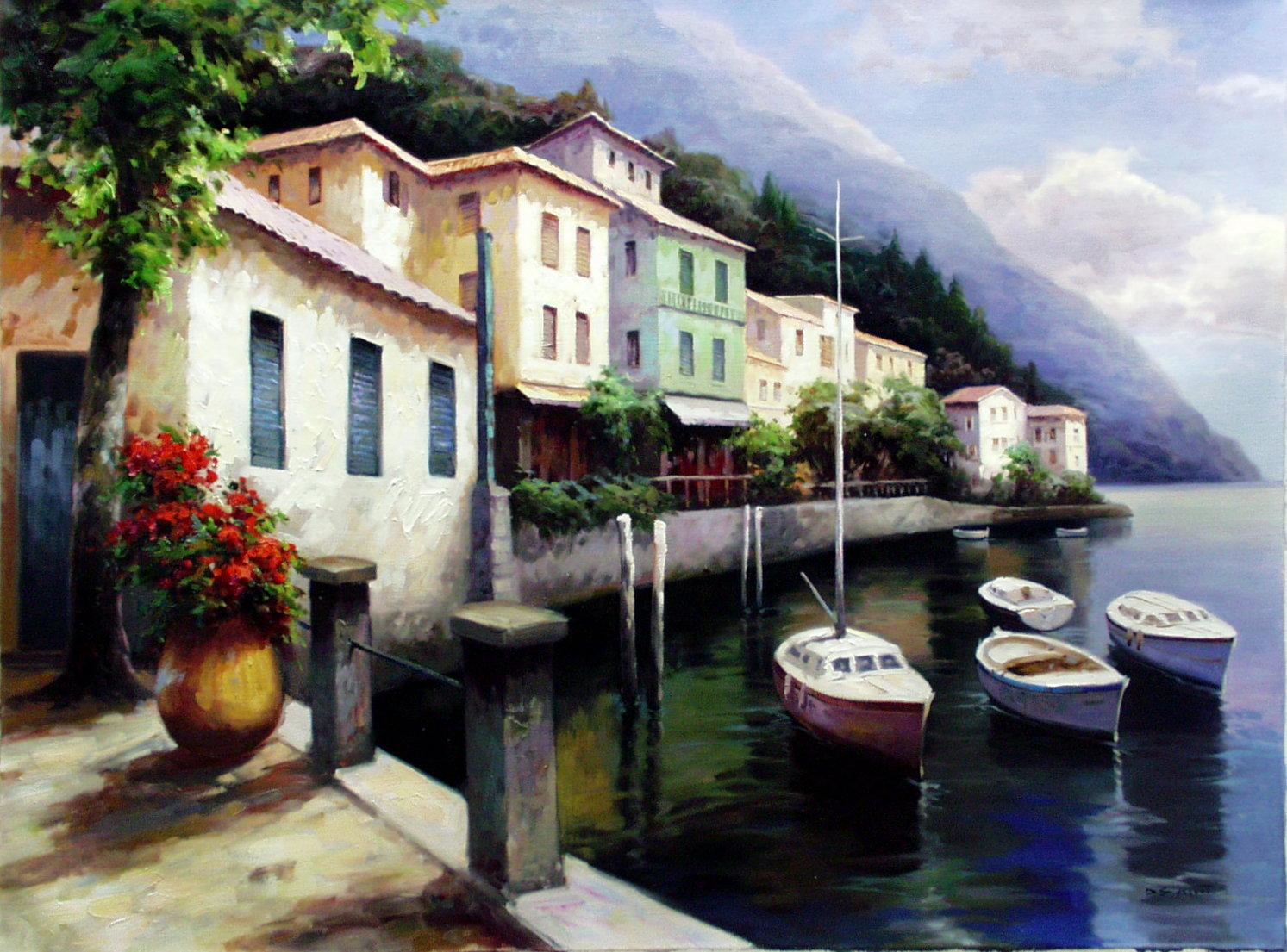 Mid Century Barcelona Harbor Sailboats Mediterranean Impressionist Oil Painting
