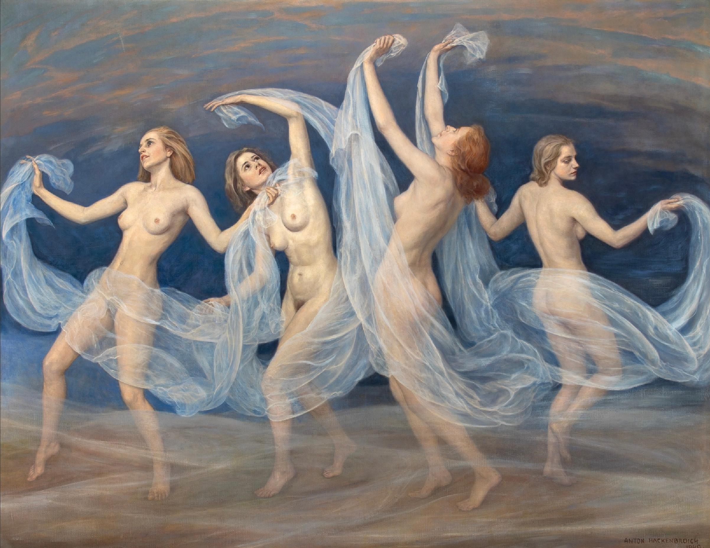 This painting captures an intimate moment between two dancers. Artist Duane Brown uses a restrained yet intentional palette. The pale dress of the woman contras...