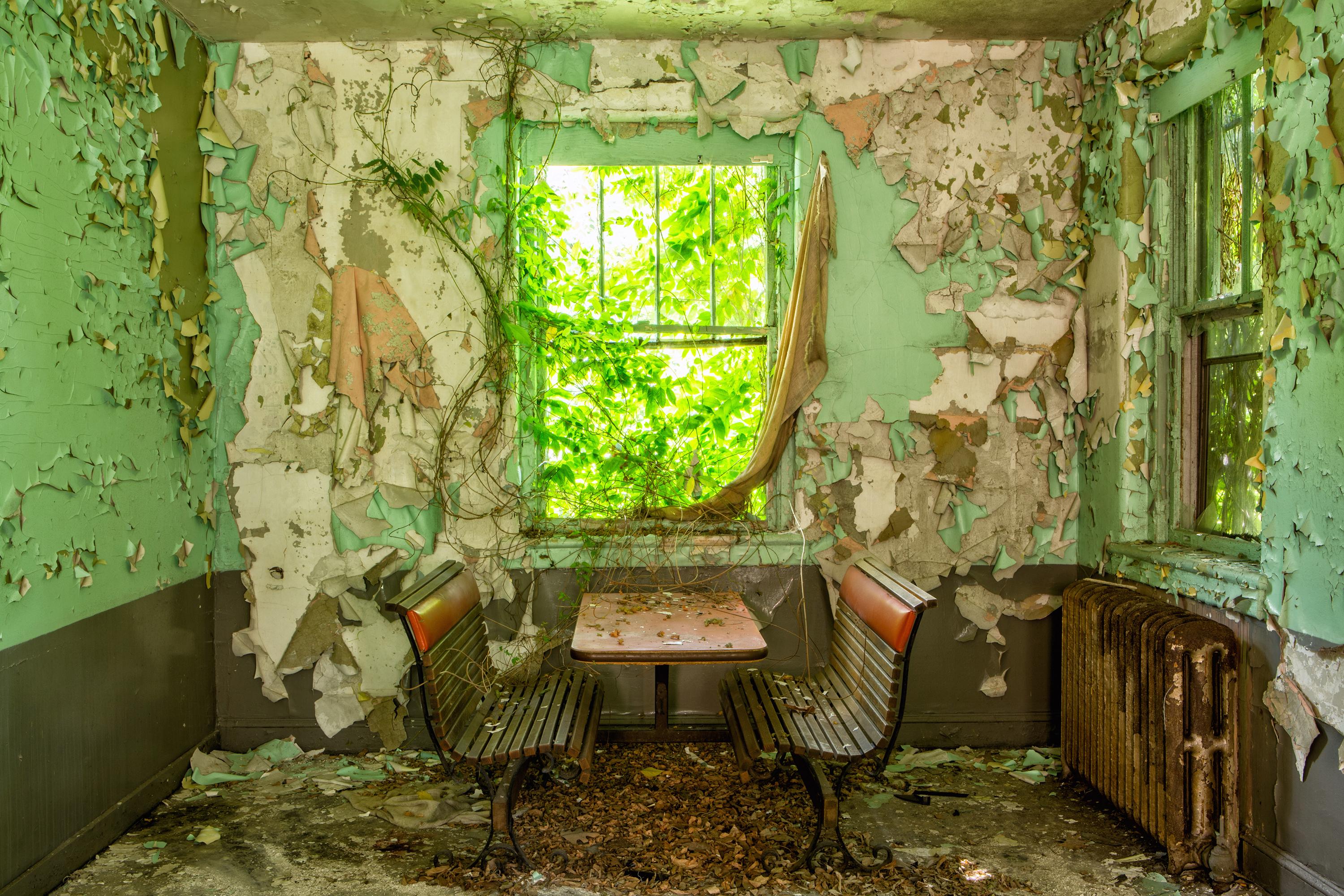 A corridor in a public space hosts a series of windows. Their rhythmic repetition adds a sense of movement, while the harmonious color scheme of beige, grey, ...