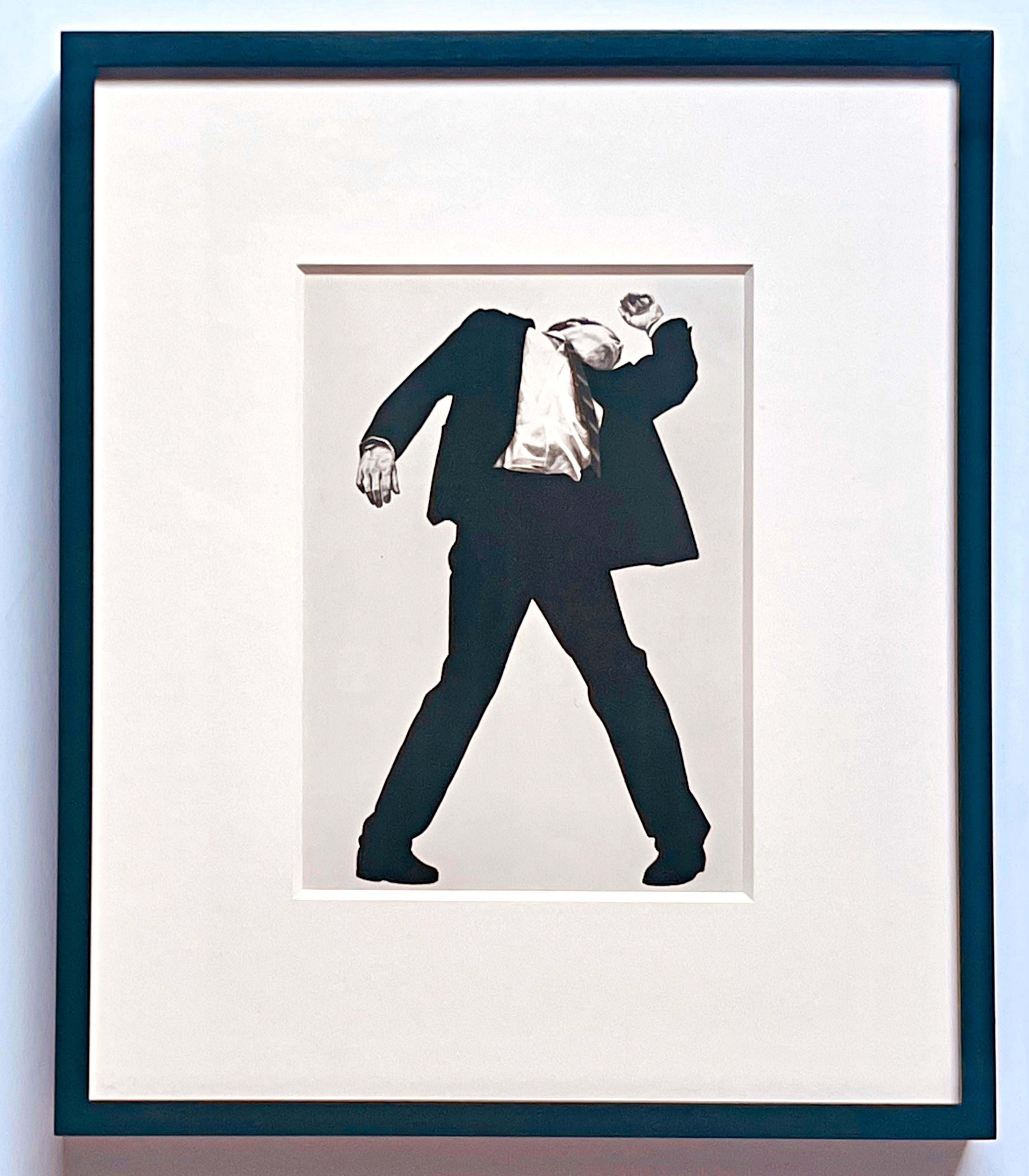A woman sits serenely on a bench, cradling a white goose against her chest. Her patterned dress blends into the patchwork of earth beneath her, while a modern s...
