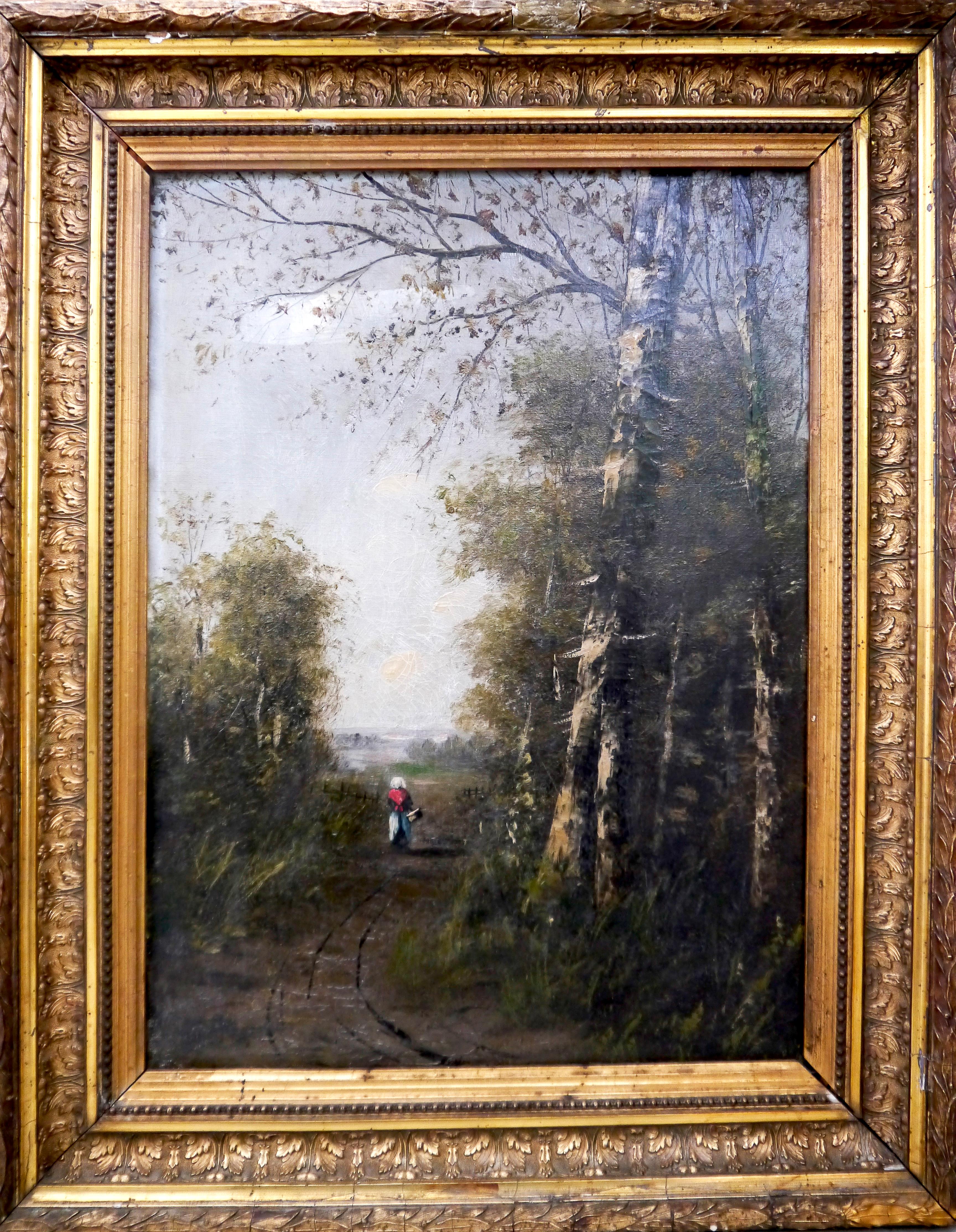 This refined antique oil portrait depicts an elegant young woman wearing a black hat accented with a red feather, captured with soft modeling and restrained realism typical of Britis...