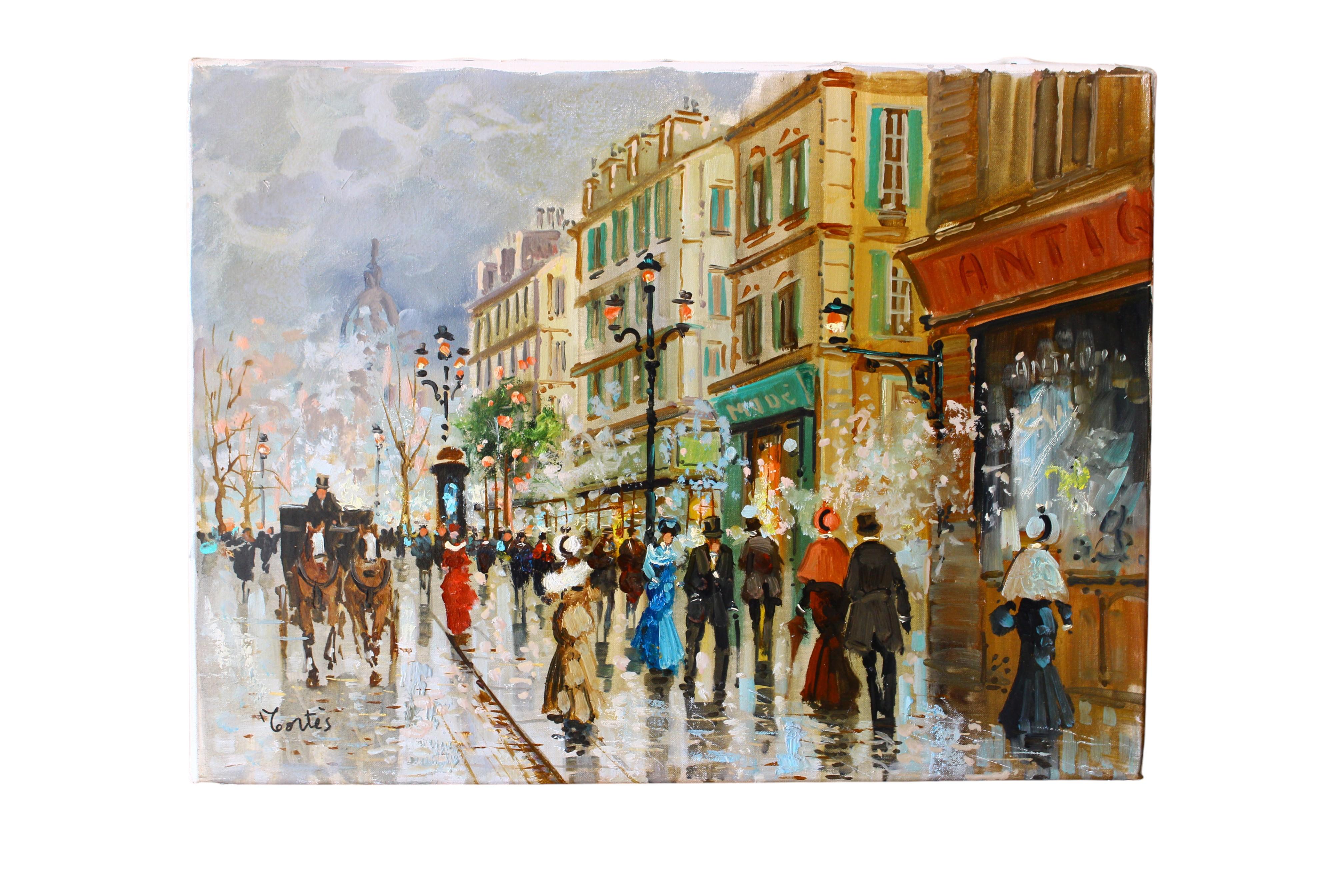 The painting features a tavern along 11th Street in West Village, New York City, on a late September afternoon. The sun bathes the pavement and outdoor dining...