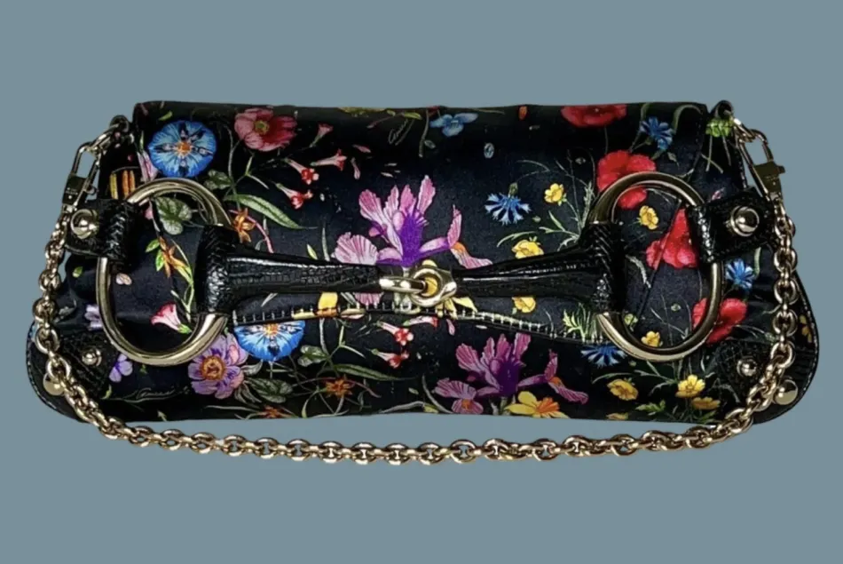 Fast-forward to the early 2000s, when Tom Ford, during his tenure as Gucci’s creative director, put his signature cheeky spin on the horse bit. In 2003, Gucci’s Horsebit clutch was ushered into the stable of iconic Y2K handbags. The design was produced in a variety of patterns, colors and materials, but the print of this limited-edition black satin Gucci Horsebit clutch offered on 1stDibs by Couture Fairy Boutique makes it particularly alla moda for 2026.