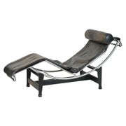 In the living room, a vintage LC4 chaise longue by Le Corbusier, Pierre Jeanneret and Charlotte Perriand reclines opposite a D4 folding chair by Marcel Breuer for Tecta, together presenting a study in early-modernist steel and leather.