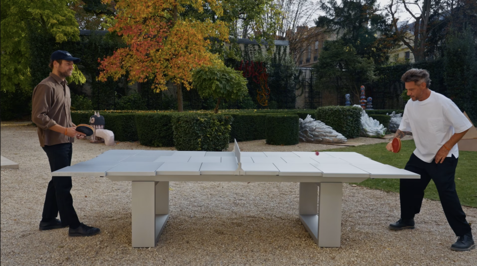 Song No. 1 had its roots in an art fair that took place long before Marty Supreme brought table tennis back to the cultural zeitgeist. De Wulf noticed that the rhythmic sounds of Ping-Pong being played on a table he had created for the exhibition attracted onlookers, sparking smiles in an otherwise stuffy environment.
