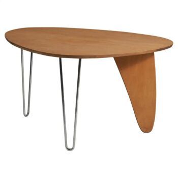 Rupert Bevan crafted the tulip-like table, which is paired with a custom banquette topped by a cushion in Rose Tarlow velvet and pillows in Zak + Fox fabrics. Hanging above is a three-armed Arrow pendant by Apparatus.