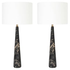 Pair of Tall Black and Light Gold "Portoro" Marble Conical Lamps, Italy, 1970