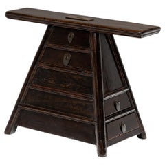 This unusual lacquered stool is a 19th-century barber's stool designed to be carried from place to