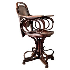 Early 20th Century Art Nouveau Wood and Wicker Tonet Italian Swivel Barber Chair
