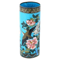 Large Antique Meiji Japanese Cloisonne Enamel Brush Pot Vase