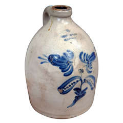 Very Rare Antique American Primitive Stoneware Salt Glazed Jug with Cobalt Flower By Jacob Eaton of