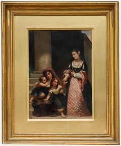 18th Century Oil on Panel French Antique Religious Painting Christ and Madonna