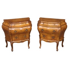 2 Vintage Italian Walnut Serpentine Bow Front Bombe Chests Commodes Nightstands