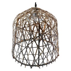 The inverted-cup shape of the Black Bird’s Nest Medium pendant has a shade woven from repurposed