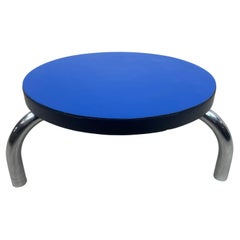 Art Deco Inspired Sapphire Blue Circular Pedestal Table, 20th Century