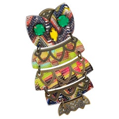 Missoni Italy Metal and Knitted Fabric Jeweled Owl Articulated Brooch