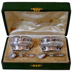 Lefebre French Sterling Silver 18-Karat Gold Salt Cellars Pair, Spoons, Box