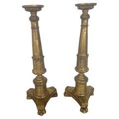 19th Century Antique Italian Baroque Style Gilt Candlesticks Candelabra