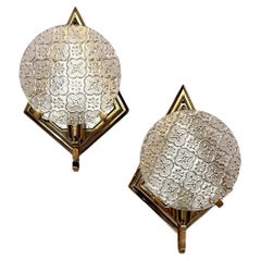 Two very rare original Italian 1960s wall lamps with glass and mirror components