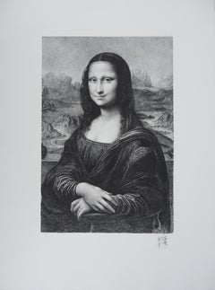 "Mini Mona Lisa Defaced", oil on canvas, figurative, pastel.