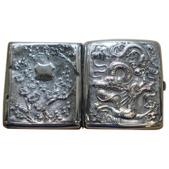 Rare Solid Silver Meiji Period Dragon Embossed Cigarette Case and Gold Gilding