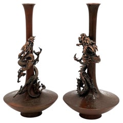 These are an excellent matching pair of large antique Chinese Foo or lion dog sculptures, sometimes called temple lions or Shishi, made of bronze with fine detail, originally hand enameled and gilded dating to the 19th century, Qing period or earlier. These are a very beautiful matching pair of large Bronze Chinese...