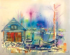 Early 1900s Post-Impressionist Landscape Drawings and Watercolors
