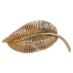 18 Karat Yellow Gold Mauboussin Paris Leaf Pin / Brooch from the 1940