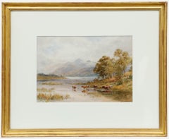 A charming Lake District scene by British artist Alfred Powell (1837-1905). Cattle watering at the