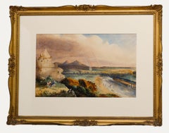 Mid 20th C. Irish Artist Watercolor Painting of Coastal Landscape with Rainbow