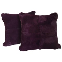 Pair of Rex Rabbit Fur Cushions Printed Leopard