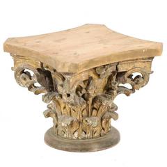 Carved Limestone Corinthian Pilaster Capital Console Table