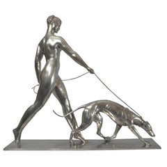 Art Deco Sculpture by Raymond Leon Rivoire Titled 'Femme au Levrier'