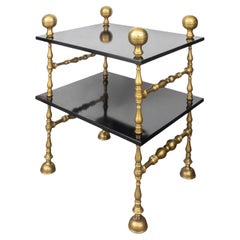 Italian Baroque Romanesque Brass & Black Lacquer 2 Tier Table