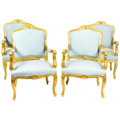 Antique Set of 4 Louis Revival French Giltwood Armchairs, 19th Century