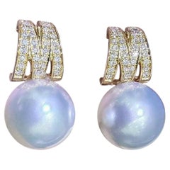 18K Gold Stud Earrings with Golden South Sea Pearls and Diamond Accents