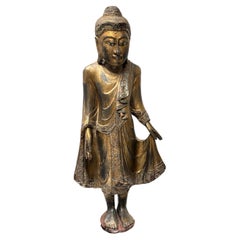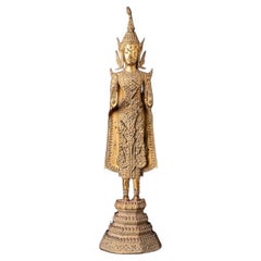 Antique Late 19th Century Gilded Thai Buddha Bronze Statue