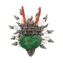 Coral, Black Diamond, Brown Diamond, South Sea Pearl, Tsavorite, 18k Gol...