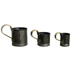 Early 19th Century Three Graduated Gill Measuring Cups Tin with Brass Handles